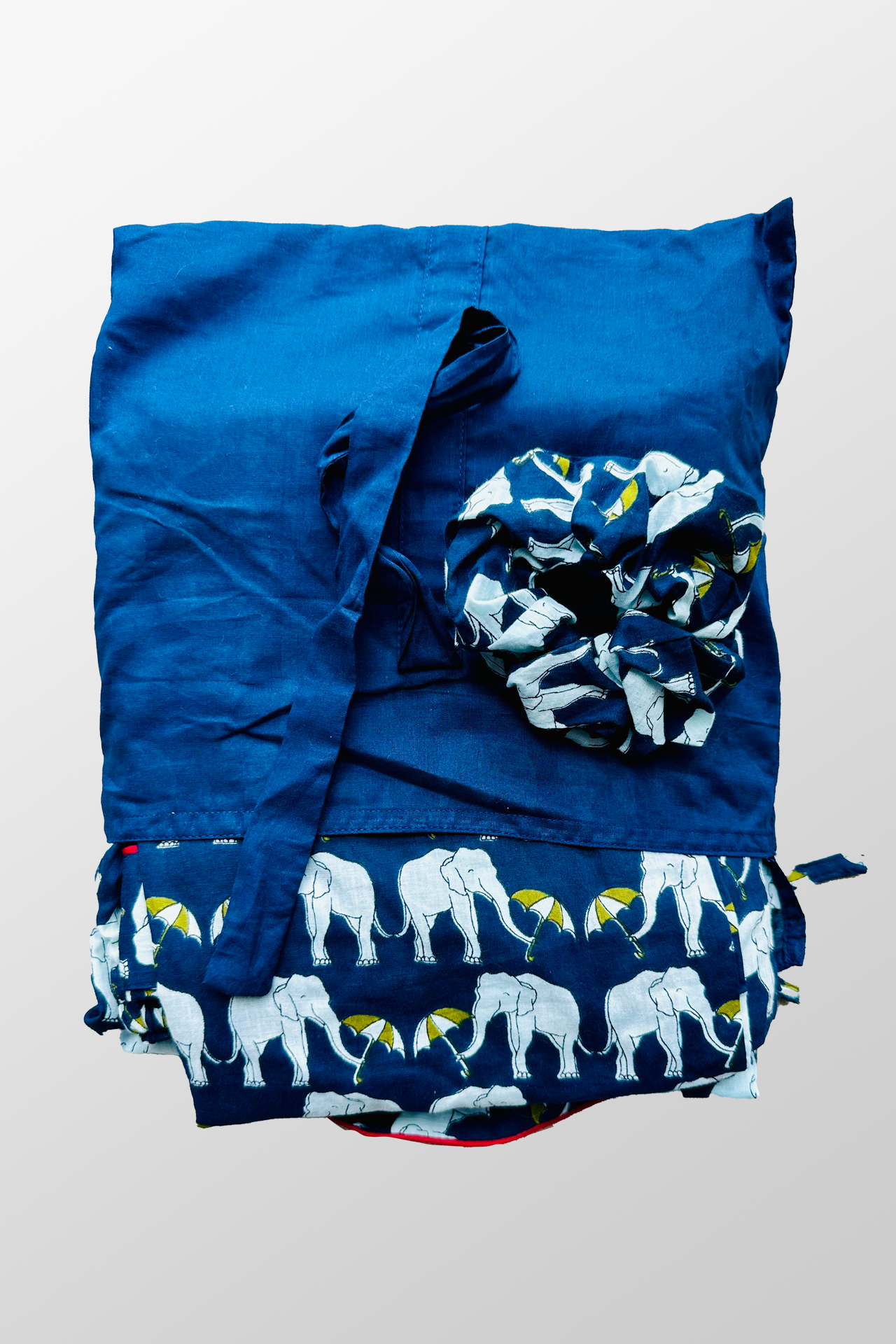 This set is in cream and navy blue playful print. The fabric is soft, high-quality 100% cotton, each piece is block printed with love — bringing heritage prints and vibrant hues right into your everyday wear.