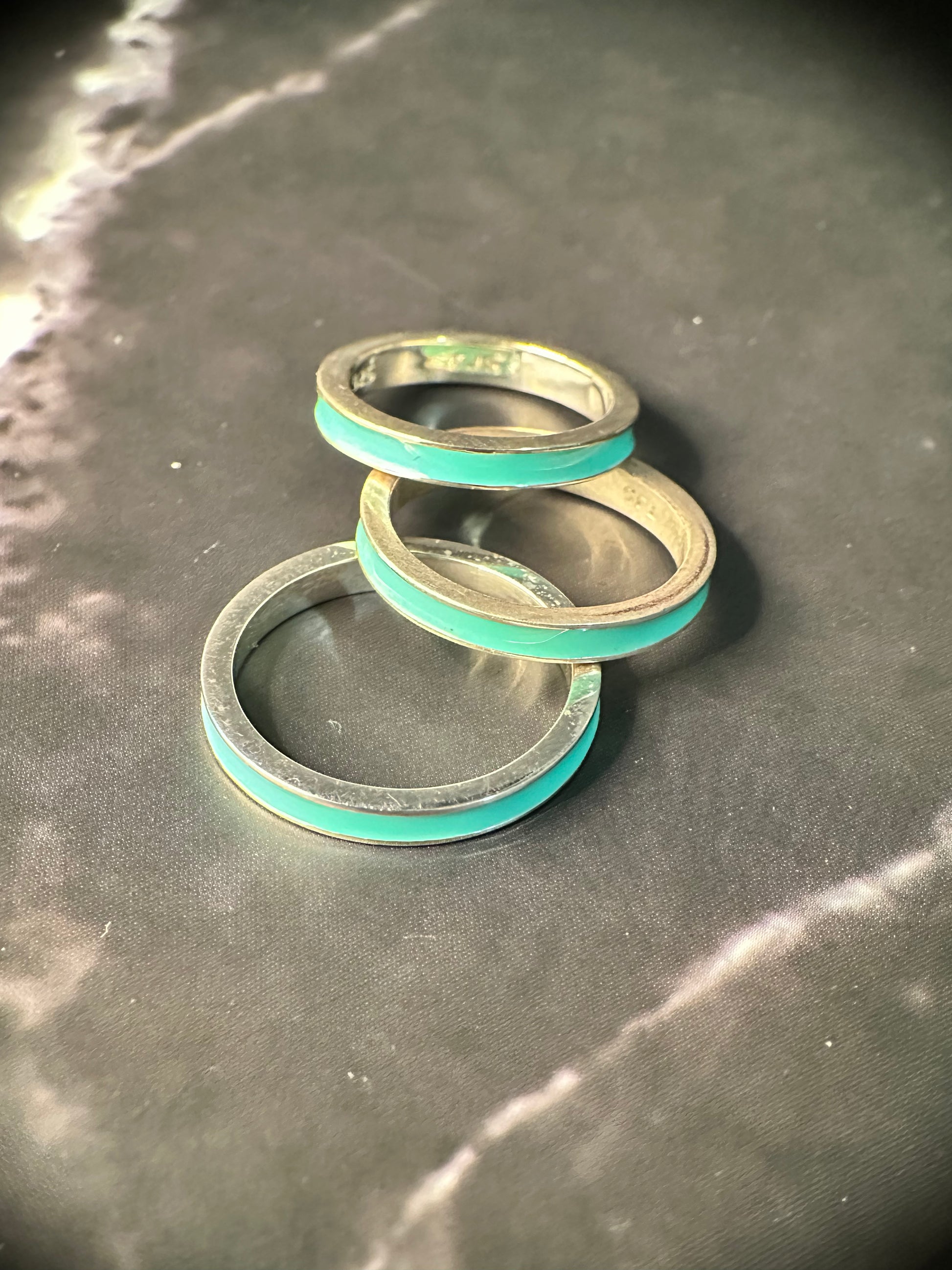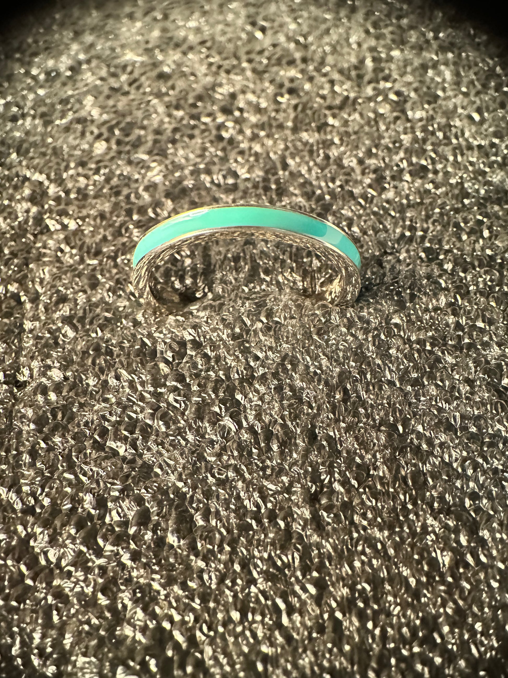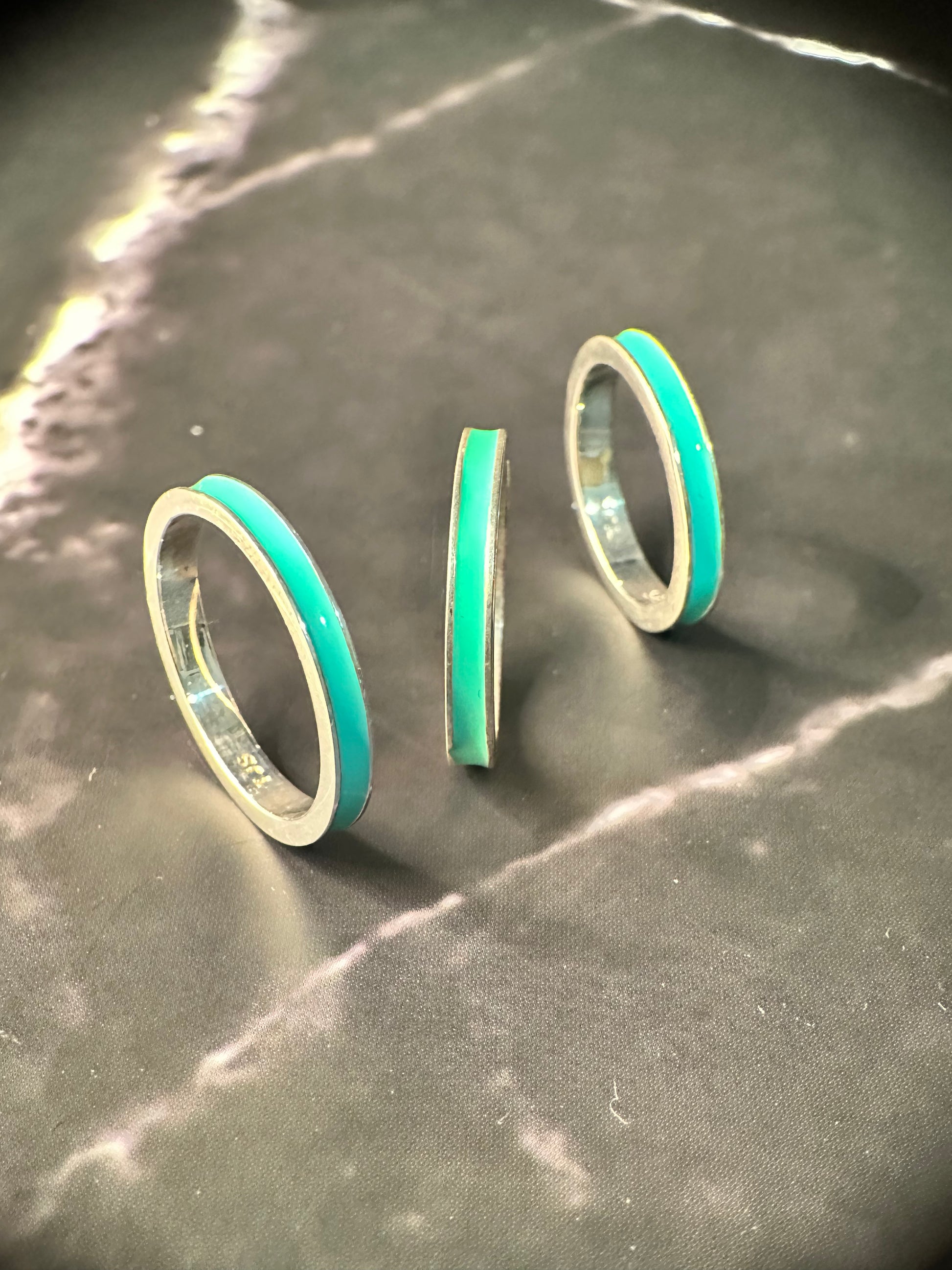 A playful and colorful turquoise band ring that can be worn alone or as a cluster. Bold and beautiful. Set in pure 925 sterling silver